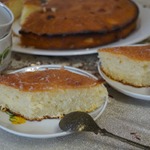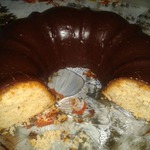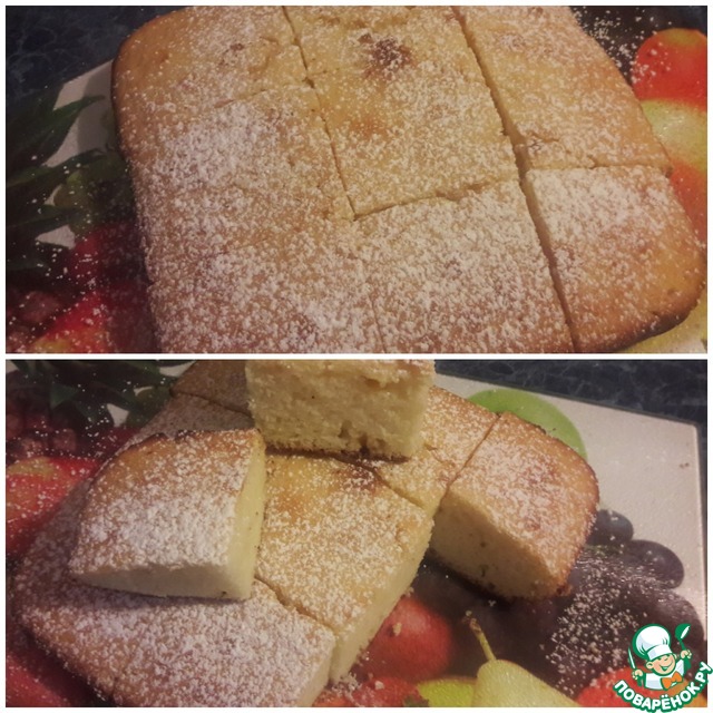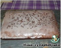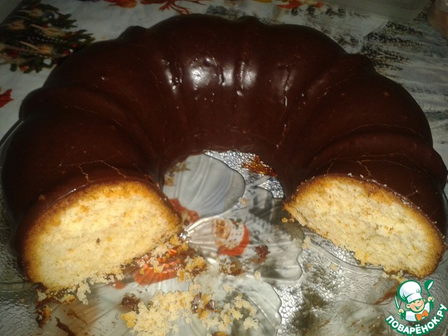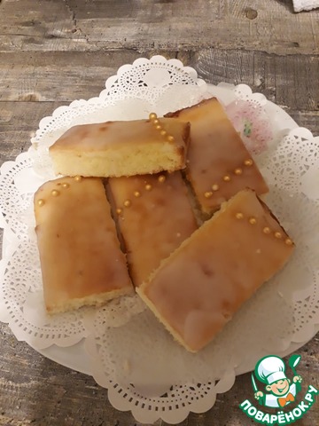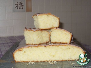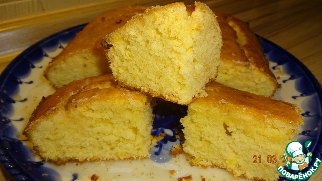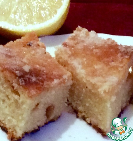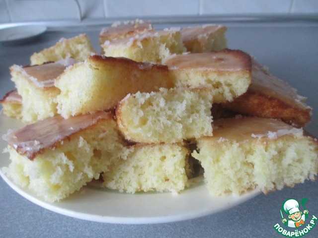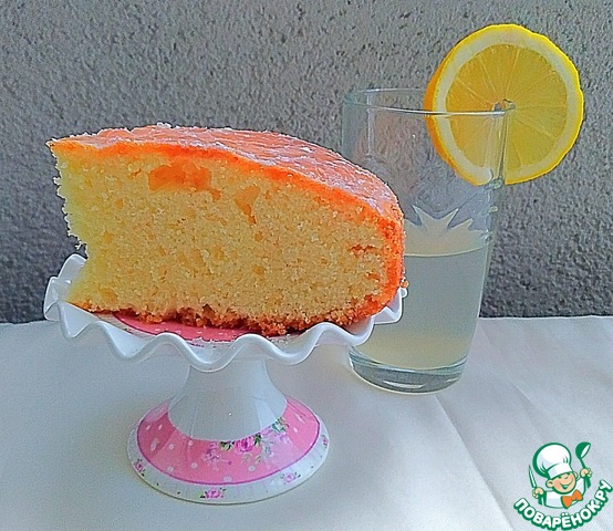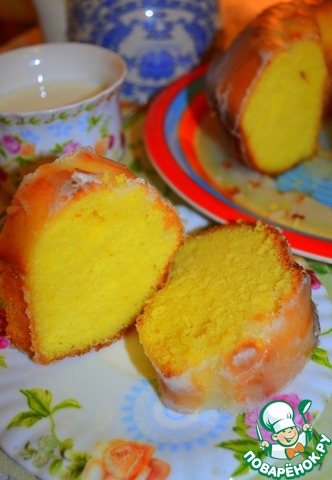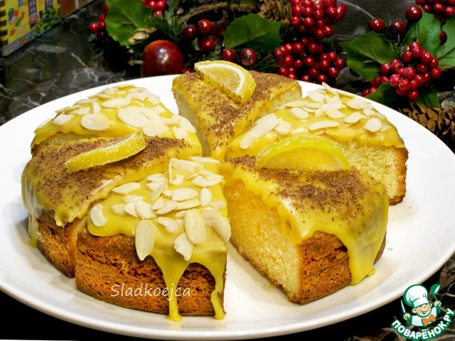 Выжать сок из половины второго лимона, добавлять постепенно сахарную пудру, все время растирая, пока не получится белая масса консистенции сгущеного молока (у меня ушло 16 ч. л.) Еще теплый пирог смазать глазурью. Кстати, этот пирог можно выпечь в виде кекса.