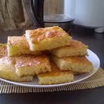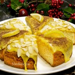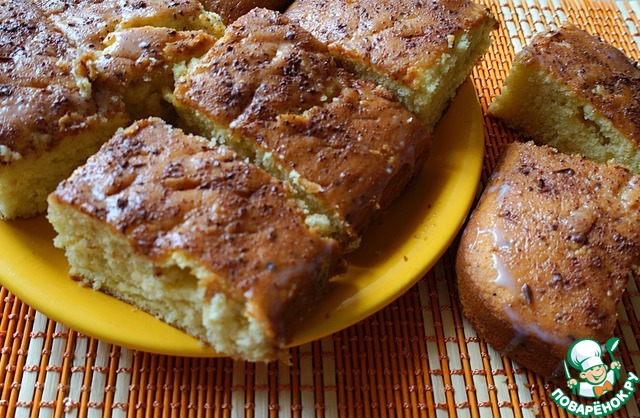 Посыпала сверху фундуком, а после выпекания еще горячим смазала лимоным джемом (не хотелось возиться с глазурью в полдвенадцатого ночи). Рецепт-то Ваш нашла часов в десять вечера и побежала на кухню печь, а потом два куска схомячила прямо ночью