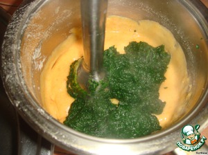 3. Шпинат кладем в кипяток и отвариваем до готовности, не более 5 минут! Перетираем миксером в пюре.