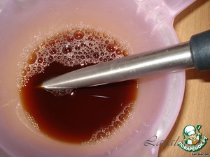 Готовим "коптильный" маринад: 4 мерных ложечек чаю (если таковых не имеется, возьмите чайными ложками БЕЗ горки!) заварить кипятком - около 150 мл, оставьте настаиваться до остывания, а можно и дольше...