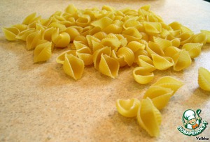 Домашней лапши у меня не было, поэтому взяла ракушки. Тут важно выбрать такие макаронные изделия, которые в готовом виде не будут слишком твердыми, они должны развариться и, хотя бы отдаленно, напоминать домашнюю лапшу.