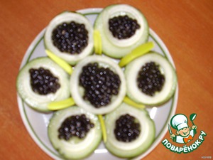 В центр – черную или красную икру (не обязательно натуральную, с "фальшивой" – тоже замечательно! можно заменить на икру из мяса рыбы или ламинарии!).