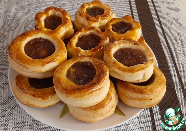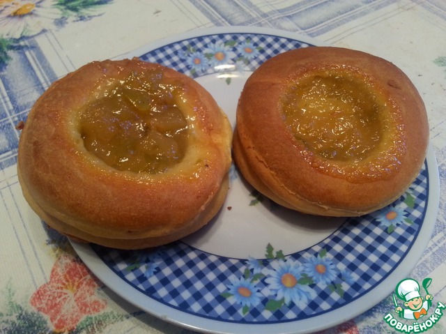 Мягкое, сдобное тесто с грушевым вареньем. Рецепт из интернета.