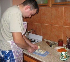 Приступаем! Точнее приступает мой любимый муж, а я наслаждаюсь всем этим действием происходящим на кухне!