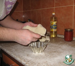 Вот так муж аккуратненько выкладывал тесто в формочки.