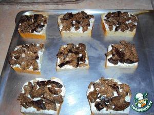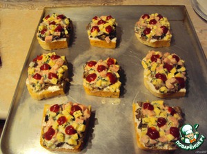 Запекать в разогретой духовке при температуре 180 градусов 10-15 минут.