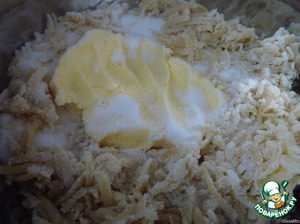Смешать муку, пекарский порошок, 60 г сахара, соль и 125 г масла.