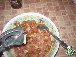 Добавить аджику, выдавить чеснок, перемешать.
