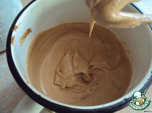 Добавить муку, остывшую шоколадно-масляную смесь, ликёр (у меня был Амаретто), снова взбить. Если вы готовите для деток, то ликёр можно не добавлять, можно капнуть немного миндальной эссенции, хотя и это не обязательно, десерт получается всё равно потрясный.