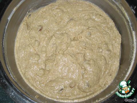 Затем всыпать просеянную обычную муку и соду, тесто размешать, оно должно получится вязкое.