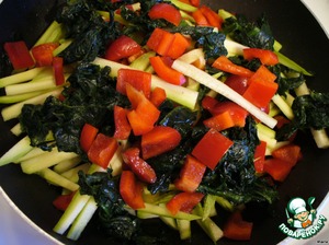 Шпинат, цуккини и перец обжарить на оливковом масле 2-3 минуты, овощи должны оставаться хрустящими.