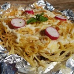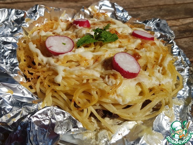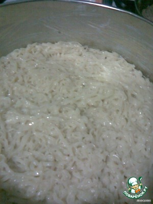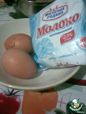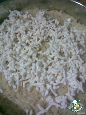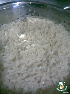 Смешать яйца и молоко (я еще добавила майонез) и влить к лапше