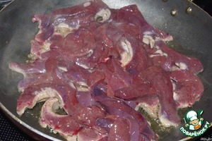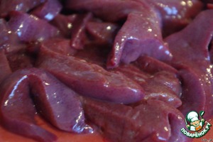 Печень нарезаем крупной соломкой. Солим и перчим - по вкусу.