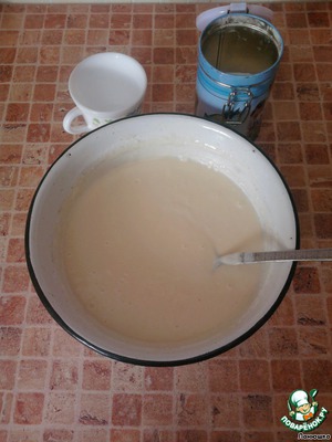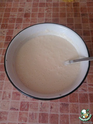В чайнике закипятить воду. В чашечку насыпать 0,5 ч. л. соды и залить крутым кипятком (примерно 3 ст. л.). Сразу же вылить в тесто и хорошо размешивать до тех пор, пока тесто не начнет "пузыриться", т. е. заработает. Вот так оно будет выглядеть. Можно начинать печь оладьи.
