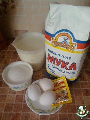 Венчиком взбиваем яйца, добавляем сахар (3 ст. л.), соль по вкусу, простоквашу (иногда я использую застоявшуюся в холодильнике сметану или в свежую простоквашу добавляю несколько кристаллов лимонки). Муки надо добавить столько, чтобы получилось тесто как густая сметана. Размешать, чтобы не было комочков. Добавить ванилин.