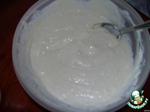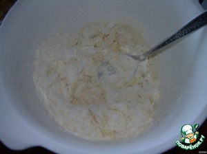 Блендером взбить товорог, добавить сахар, яйцо, манную крупу, сметану, всё перемешать...