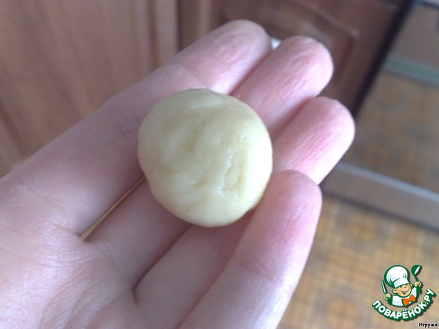 Из остатков теста скатываем маленькие шарики -