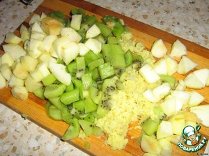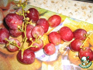 Виноград я взяла розовый, разрезала каждую виноградинку и вынимала косточки, их было мало, так что не возилась.