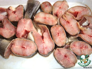Рыбку чистим, моем, нарезаем на порционные кусочки, удалив голову, плавники и хвост. Солим и перчим кусочки рыбы.