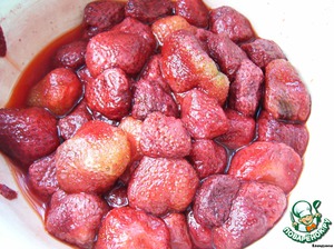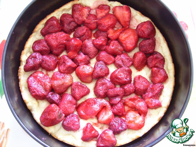 А теперь не в обиду будет сказано, голову включать надо. Ну не подсохла у меня основа за 10 минут, мне никто не мешал ее держать в духовке дольше (ведь духовки у нас у всех разные). Тоже самое с верхом, только через 1 час он был готов при температуре 200 градусов (я единственное положила 1 кг клубники, может из-за этого). Дальше, верх, Марианна пишет, что он остался мягким, а каким он может быть, если мы берем стакан сметаны и 2 ложки муки, как можно ждать от такого сочетания коржи, как на "Наполеон"