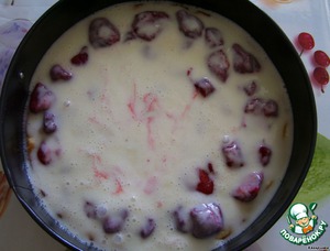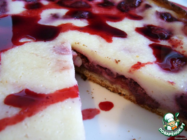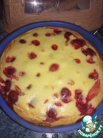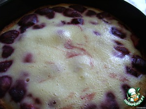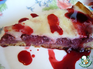 И заливаем нашей сметанной смесью. Пирог ставим в духовку на 40 минут