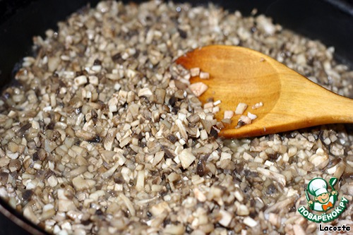 Свежие шампиньоны мелко нарезать и обжарить на небольшом количестве сливочного масла.