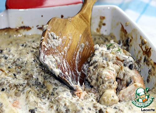 Рецепт «Форель, запеченная в сливочно-грибном соусе»: