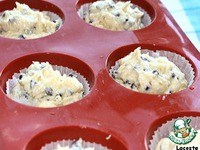 Заполнить тестом формы для кексов на 1/2 часть. Дополнительно формы можно выложить бумажными капсулами. |