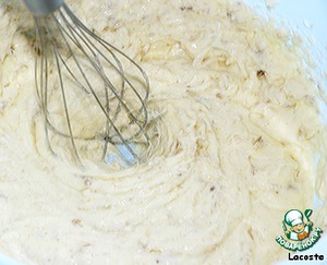 Из бананов сделать пюре, добавить в тесто и перемешать. |