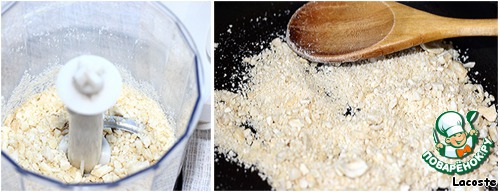Орехи измельчить, жарить на сухой разогретой сковороде, часто перемешивая, 2 минуты.