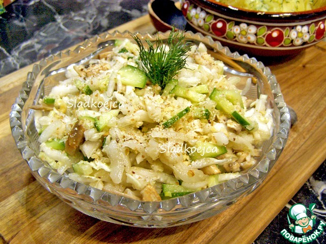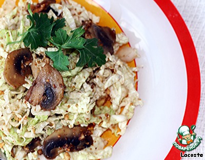 Рецепт «Салат из китайской капусты с шампиньонами и орехами»: