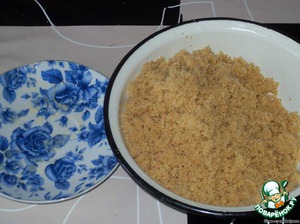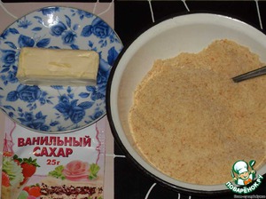 Печенье натереть или размолоть в крошку (я взяла один бисквитный корж и половину пачки печенья "Отрада").