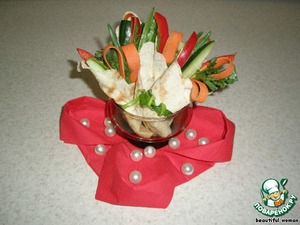 Наша закусочка готова, можно подавать ее порционно, а можно в салатничке по 4-5 кулёчков.
