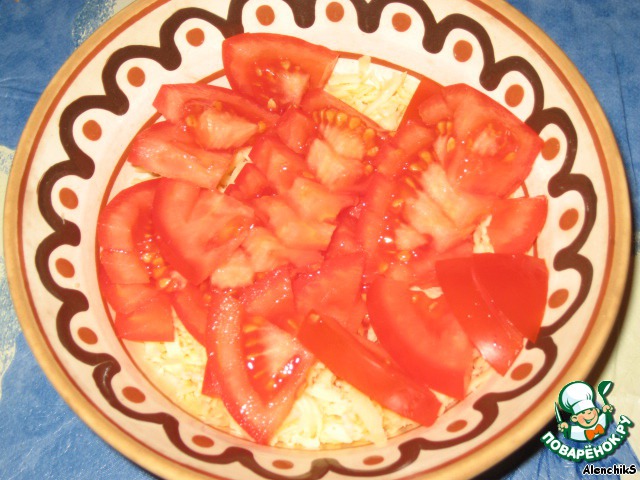 Пару лет назад попробовала в ресторане салат под названием "Нежность". Кое-что из него удалила, кое-что добавила, и в итоге получился он не очень нежным, поскольку довольно-таки остренький, но очень вкусный.