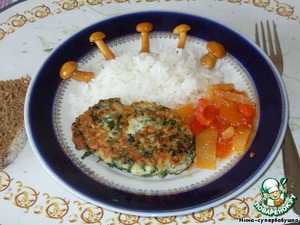 Смесь выкладывать мокрой ложкой в сковороду с растительным маслом, придавая вид котлет. Обжарить с двух сторон на небольшом огне до подрумянивания. Подавать с картофелем или рисом. Я подала с рисом и домашним лечо.