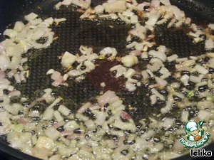 На разогретой сковороде растапливаем сливочное масло и обжариваем лук до прозрачности