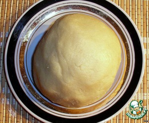 5. обмять тесто и разделив на столько частей, сколько у вас форм (которые вы уже смазали маслом и посыпали мукой).