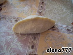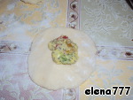 Шарик примять рукой на столе, присыпанным мукой, сверху положить чайную ложку начинки.