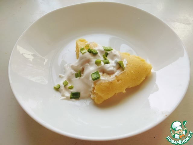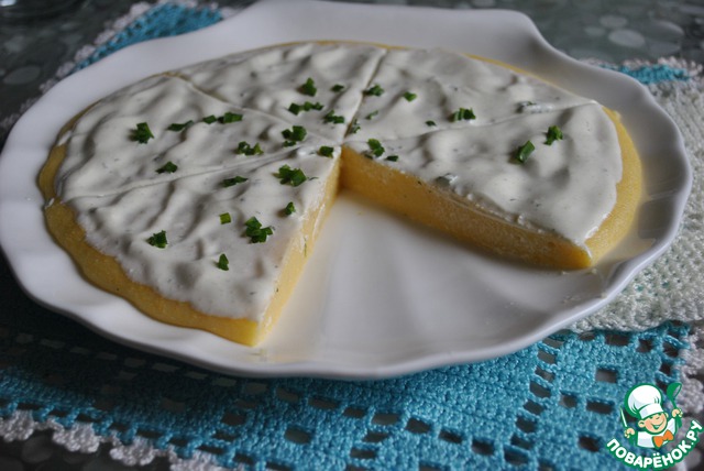 Сваренную поленту выложить в смазанную оливковым маслом форму.