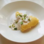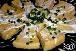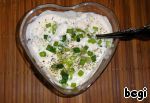 Для соуса смешать майонез, сметану, приправу и мелко нарезанный зеленый лук.