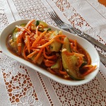 Включила телевизор и увидела рецепт приготовления этого салата. Казалось бы, что может быть банальнее сочетания моркови и огурца! Но весь секрет в нестандартной нарезке и просто изумительной, восхитительной, необыкновенной и ароматной заправке! Уверена, просто убеждена - салат понравится абсолютно всем!