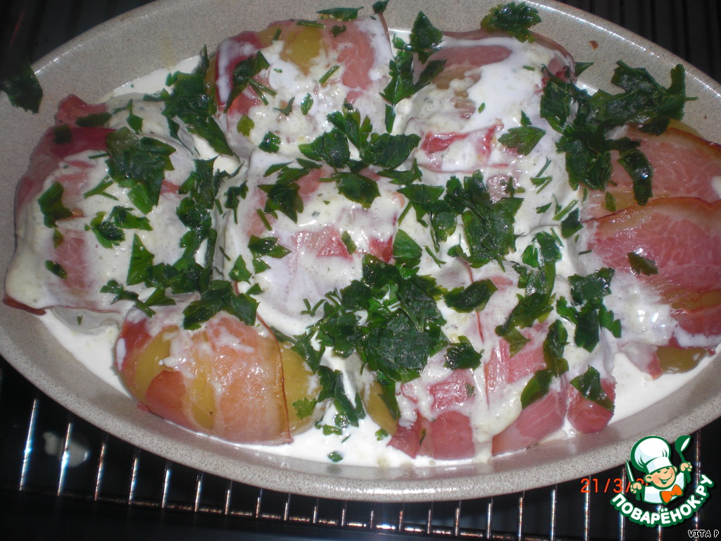 Ингредиенты для «Картофель в беконе в молочном соусе»: