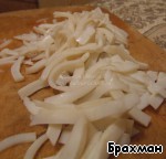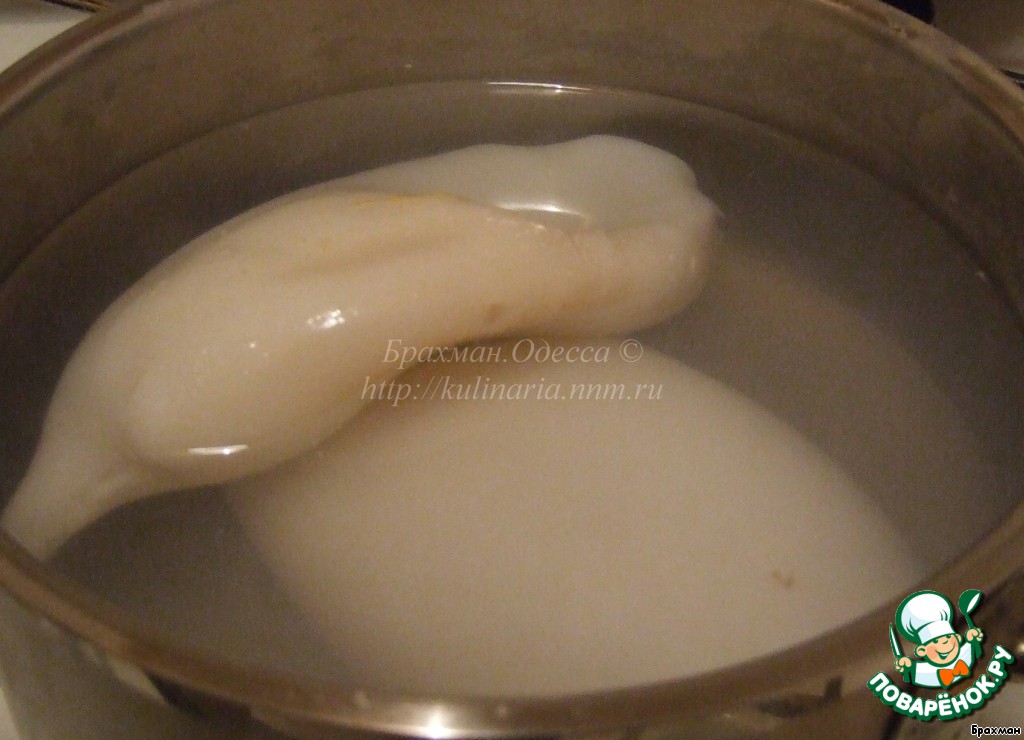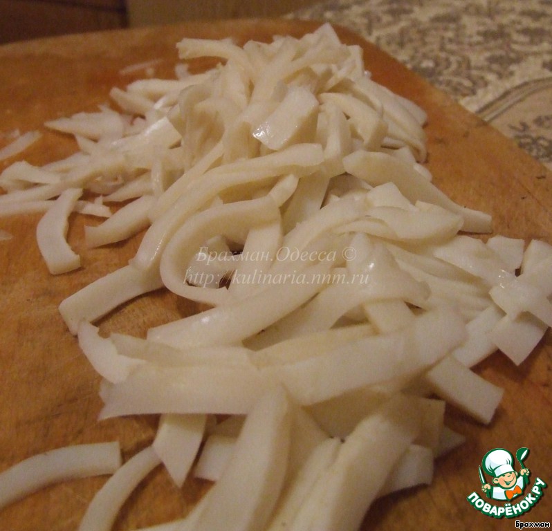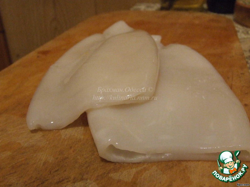 - Кальмар ставим вариться до мягкости - буквально пару минут.