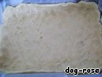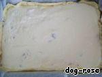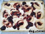 Оставшееся тесто раскатываем прямоугольником, смазываем вареньем.