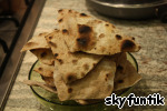 Дальше отрывайте кусочки размером с грецкий орех, раскатывайте максимально тонким листом, произвольно режьте и выпекайте на среднем огне на сухой сковороде до подрумянивания. -