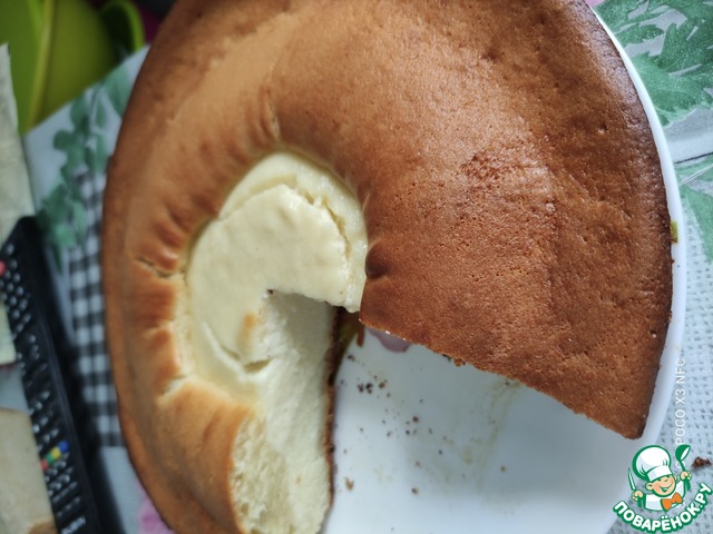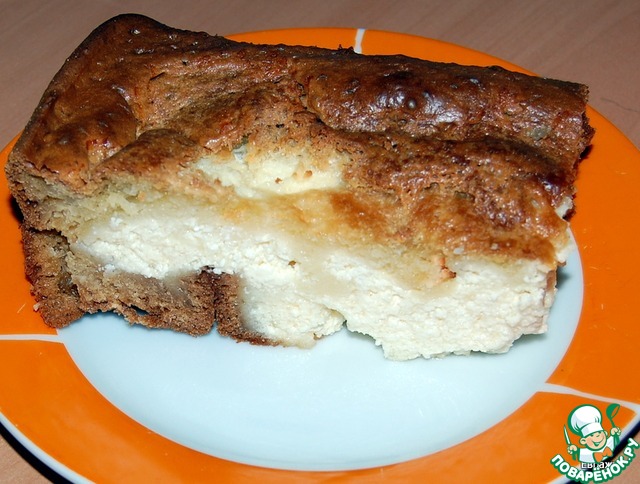 Очень простой в исполнении, быстрый и очень вкусный пирог. Нежный, ароматный! Мой муж от него просто в диком восторге. А одна моя подруга говорит так: "О! Это великая ватрушка!" Правда рецепт давно гуляет в интернете, еще одна моя подруга по "Контакту" выложила его на кулинарном сайте (что-то там 7... не помню, как), но она сослалась на меня, как на автора рецепта, за что ей спасибо. и "Вконтакте" и на этом сайте успех был оглушительный! Но здесь как-будто ничего похожего нет, поэтому и рискнула разместить. Я сегодня снова его пекла.