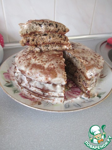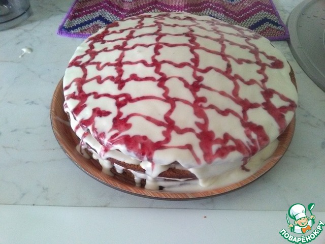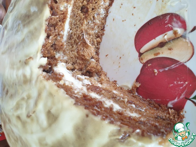 При такой последовательности, к моменту окончания выпечки пирог уже успевает пропитаться полностью и его не надо оставлять для этого специально.