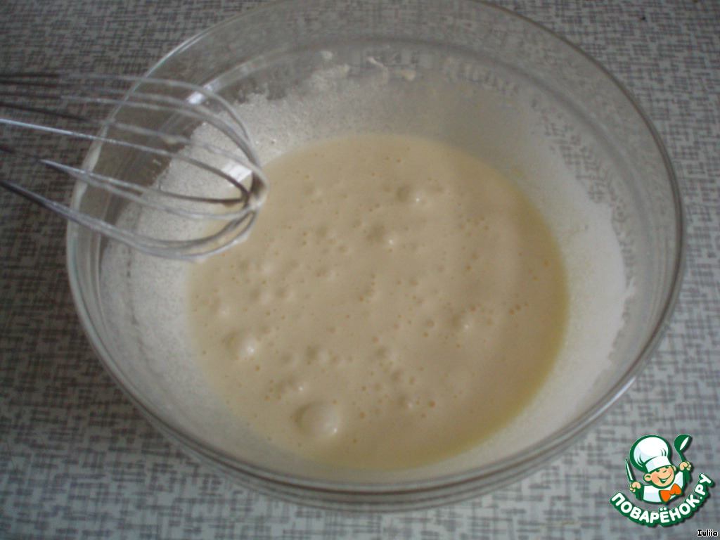 Яйца взбить с 1 стаканом сахара. Тугой пены добиваться не обязательно.