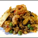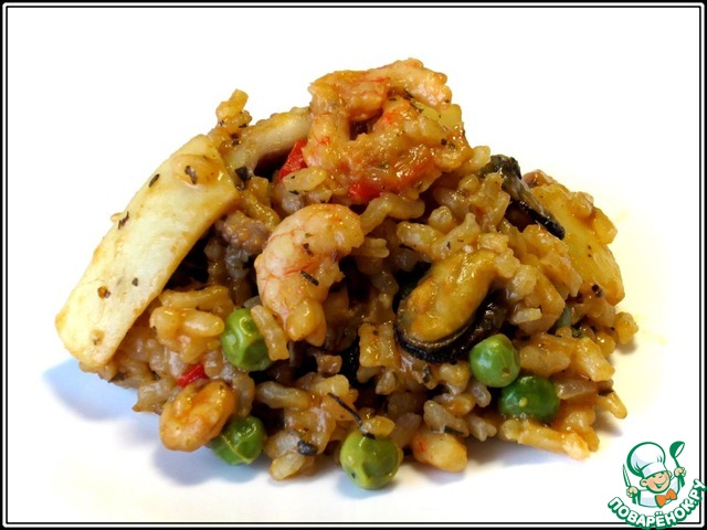 Недавно случайно наткнулась в интернете на этот рецепт. Мне он показался интересным и был претворен в жизнь с небольшими изменениями. Сказать, что это вкусно - не сказать ничего. Для меня, страстного любителя морепродуктов - это, как минимум, ОЧЕНЬ вкусно! Не буду утверждать, но в аутентичной паэлье, вроде бы, в составе должна присутствовать курица, в этом рецепте ее нет, поэтому это блюдо может быть предложено в качестве постного питания в дни, когда разрешены морепродукты.