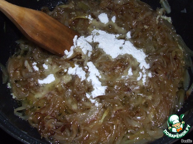5. Еще через минут 10 добавляем муку, при этом все время помешиваем.
